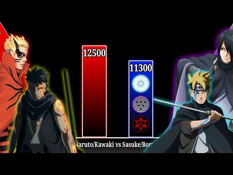 Naruto And Kawaki Vs Sasuke And Boruto Power Levels Youtube